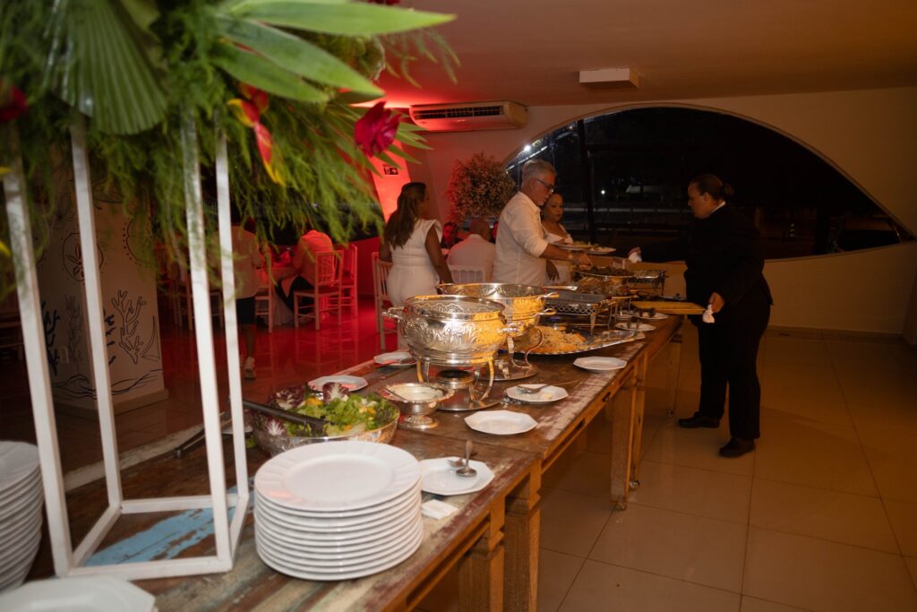 – Buffet completo, com saladas, carnes nobres, massas e acompanhamentos especiais;
